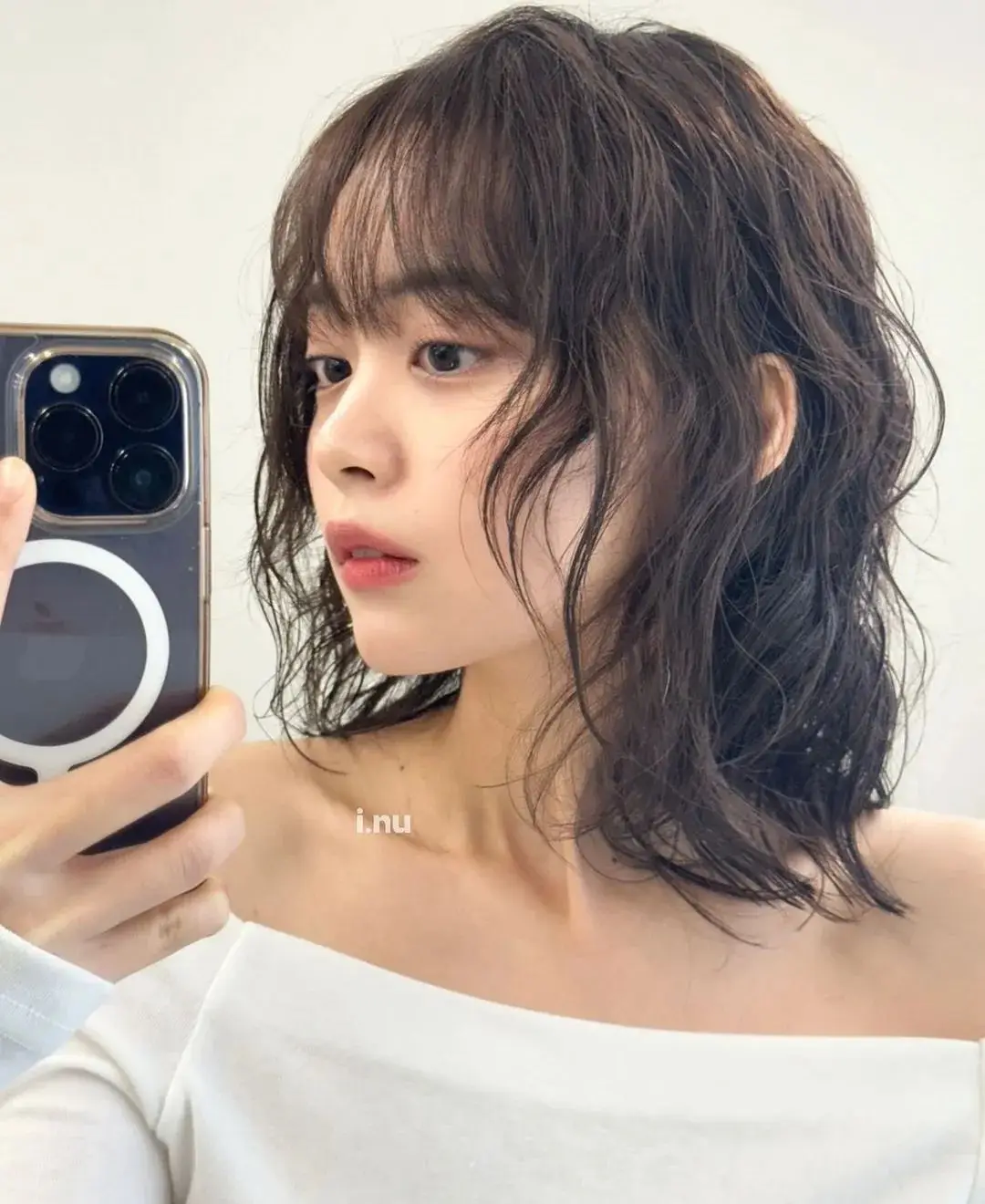 中分的蛋卷头发很适合锁骨发,半长的头发烫卷造型更时髦,而且日常只要