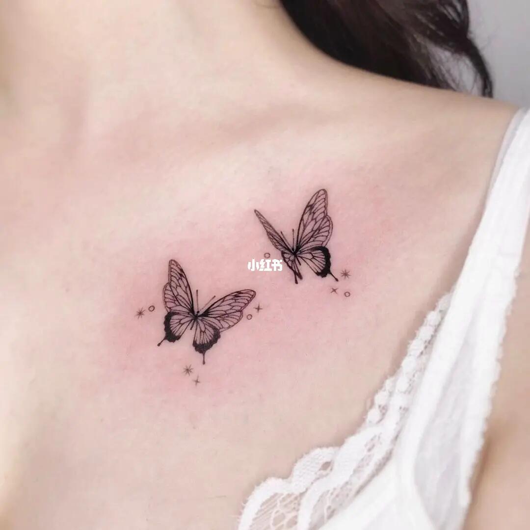 超级好看的蝴蝶纹身图案,女生锁骨纹身图案#纹身 #合肥纹身 #女生