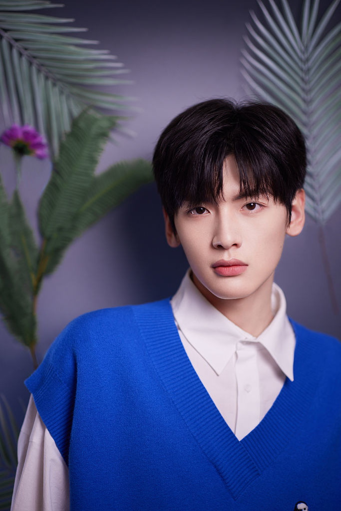 翟潇闻最新写真少年感扑面而来白衬衫配蓝针织背心简单帅气