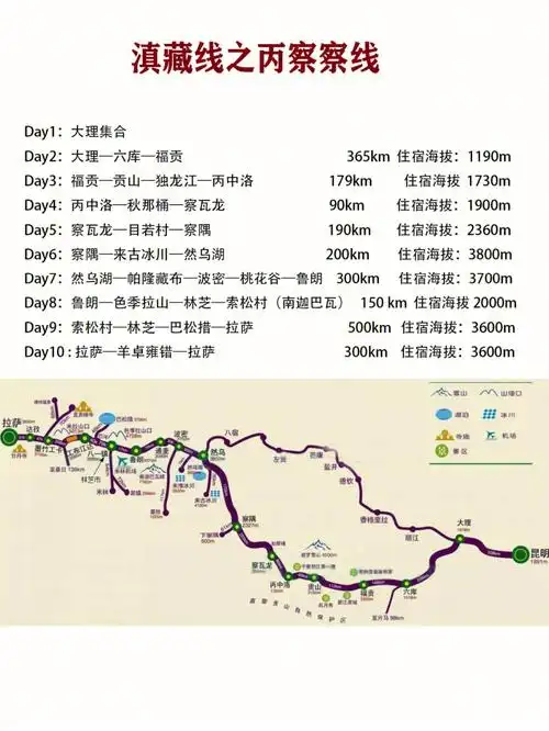 一图看懂丙察察路线,老驴友必打卡的进藏挑战行程