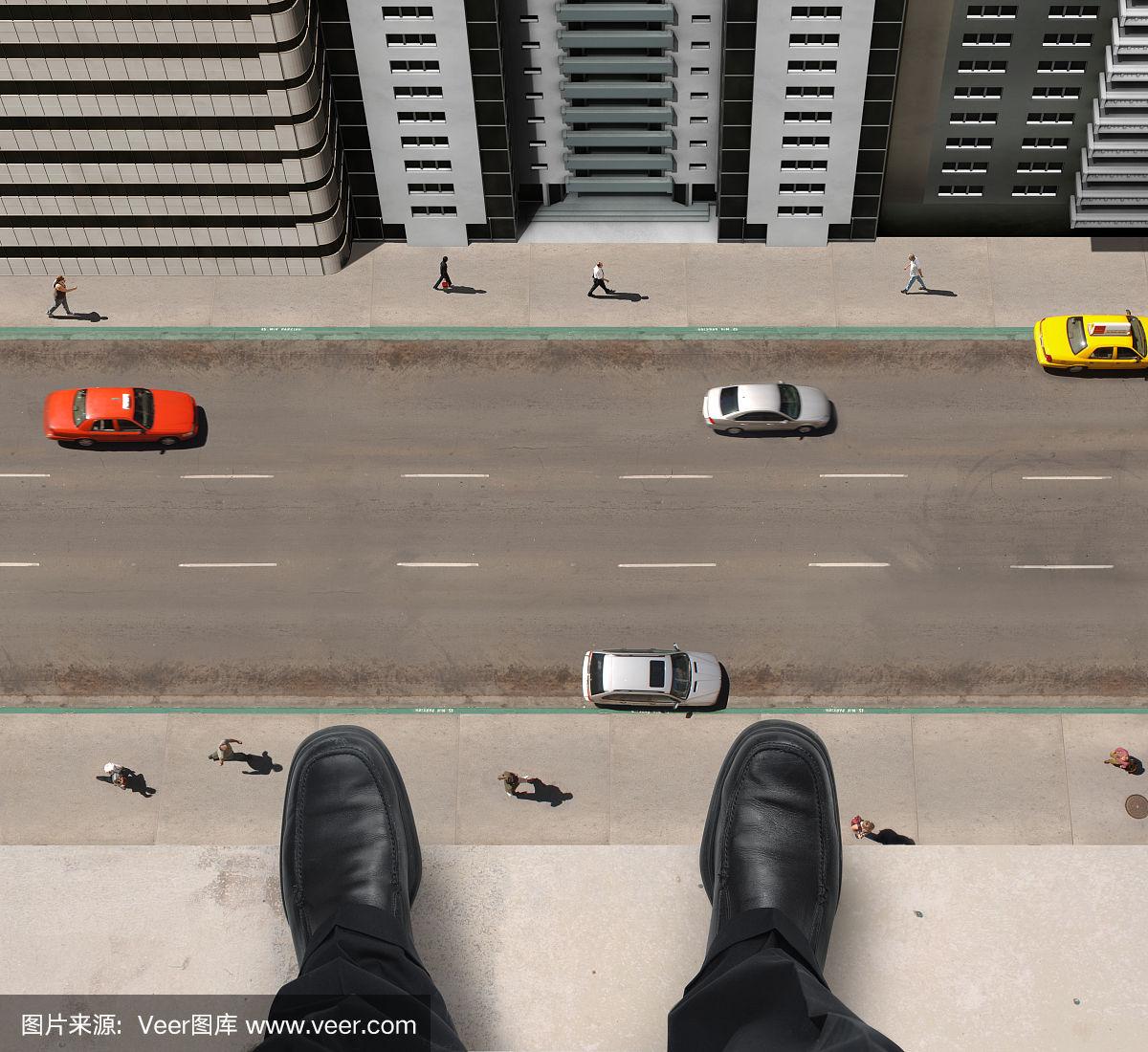 一个人站在高楼的边缘往下看
