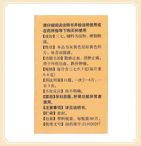 三七伤药片--药品|价格|口服普通片|药品说明书|包装|处方药|生产厂家
