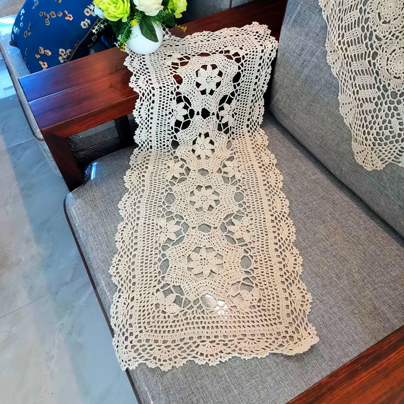 桌布布蕾丝电视柜乡村棉线茶几钩针桌旗编织复古北欧棉麻美式盖布