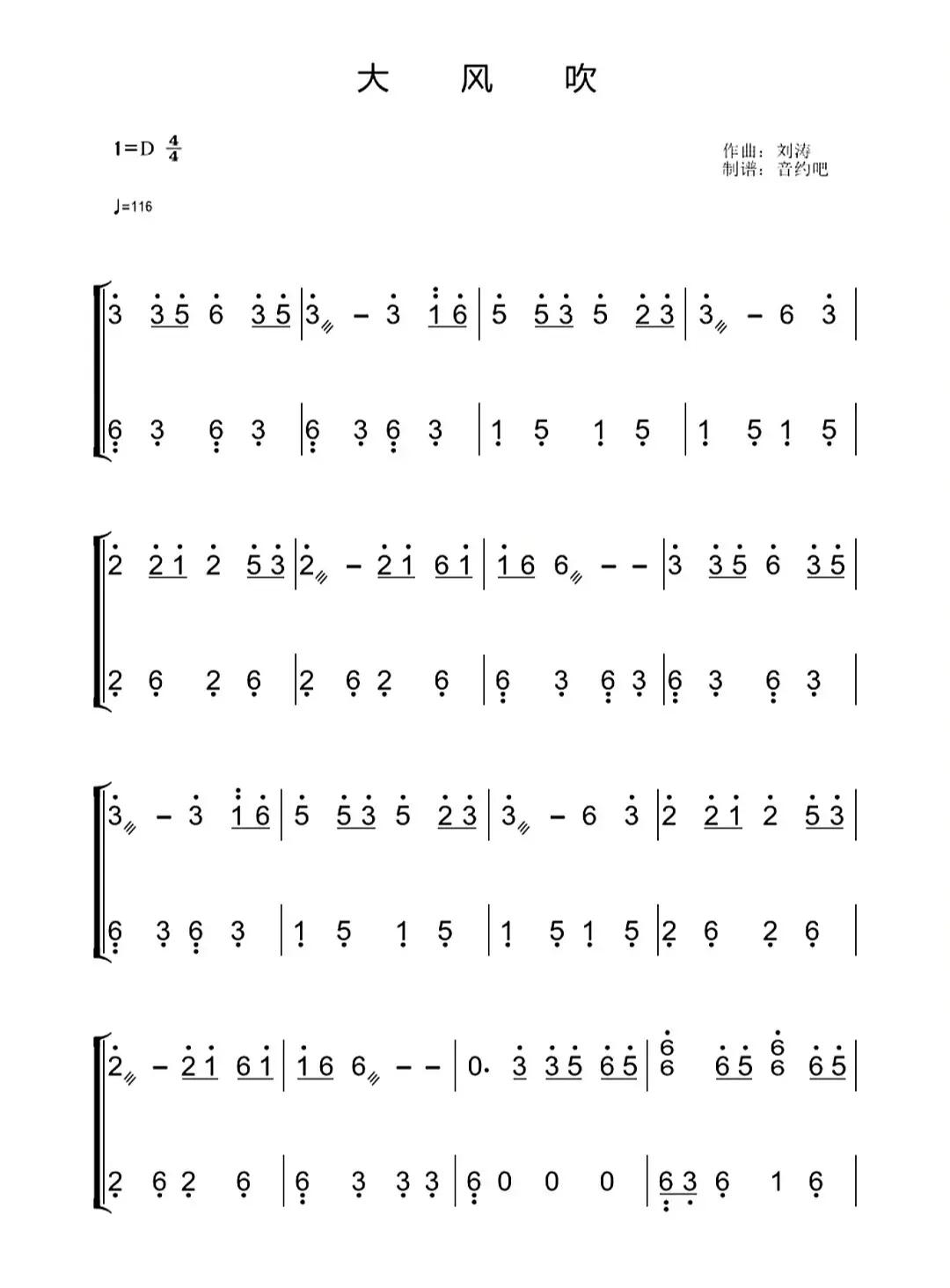 大风吹d调古筝谱
