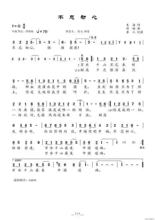 不忘初心 混声合唱谱 钢琴伴奏谱 正谱 五线谱 声乐谱 简谱 - 抖音