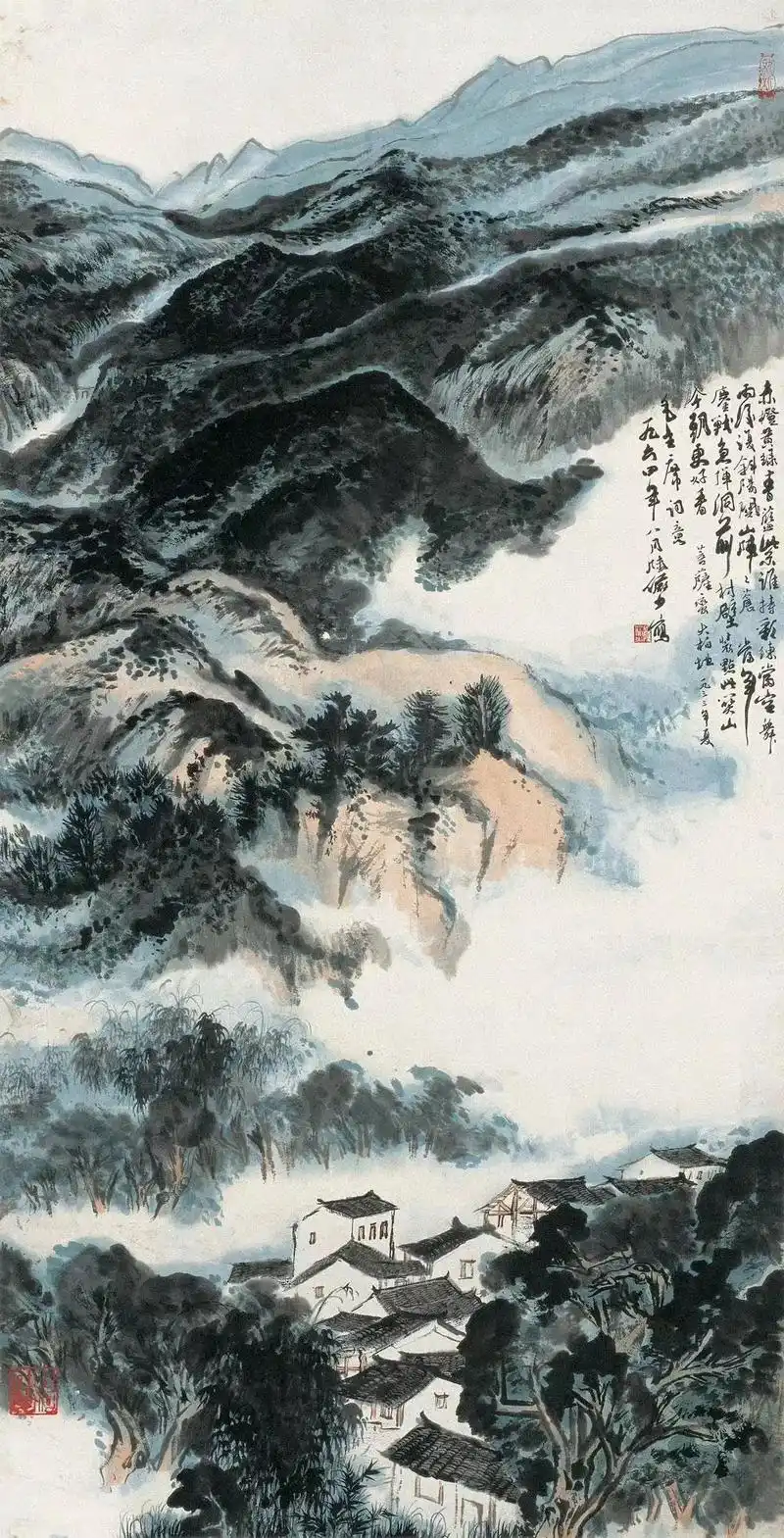 陆俨少擅画山水,尤善于发挥用笔效能,以笔尖,笔肚,笔根等的不同运用来