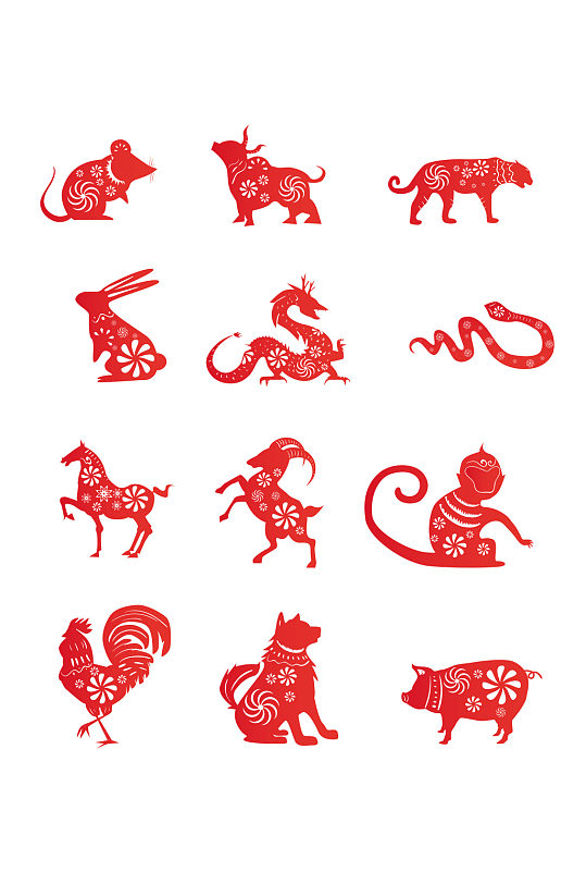 十二生肖剪纸图案黑白打印底稿简单手工卡通生肖刻纸图样练习素材
