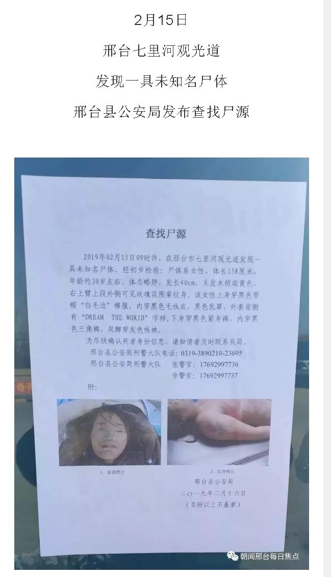 巡司镇辖区发现的河中女尸警方寻尸启事出来啦