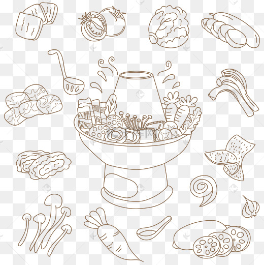 手绘卡通美食火锅食物素材