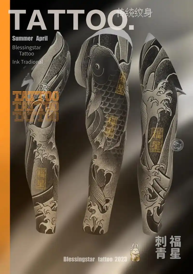 设计花臂稿鲤鱼文身.化繁为简,黑灰也可以玩出不同的感觉. 放 - 抖音