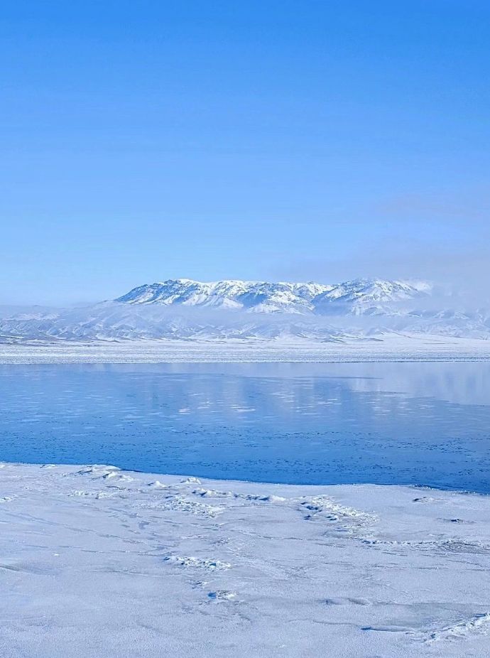 冬天的赛里木湖非常的安静,湖水蓝得透彻