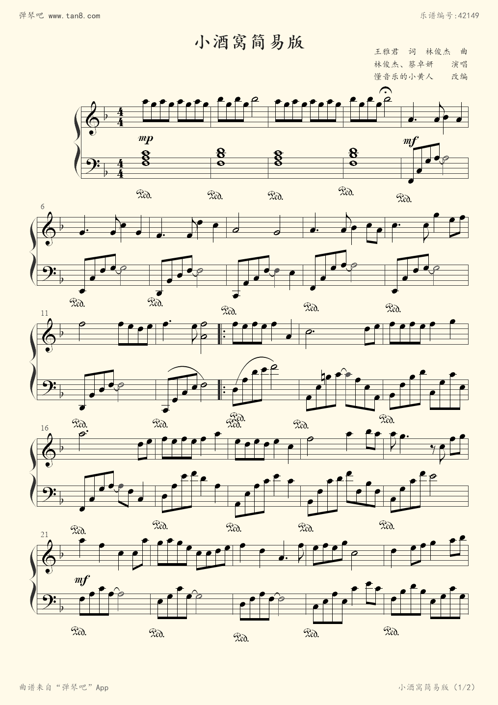 小酒窝-好听版五线谱预览1-钢琴谱文件(五线谱,双手简谱,数字谱,midi