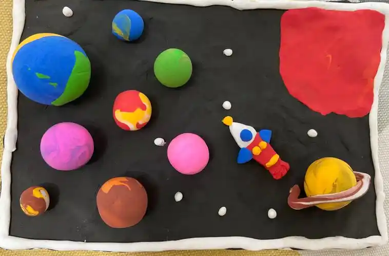 彩泥做成的太阳八大行星模型展览作品