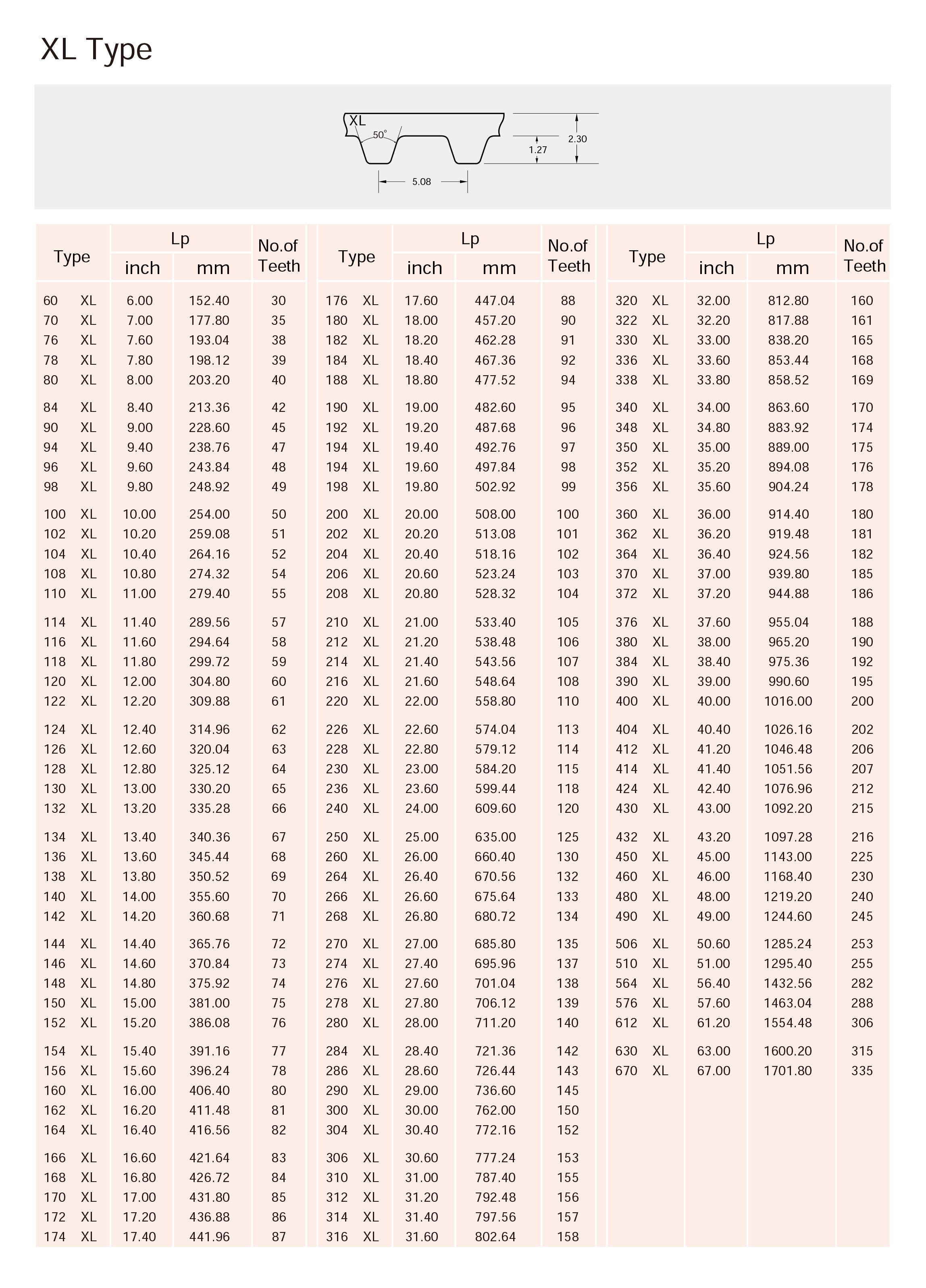 同步皮带规格.型号,尺寸表l型(节距=9.