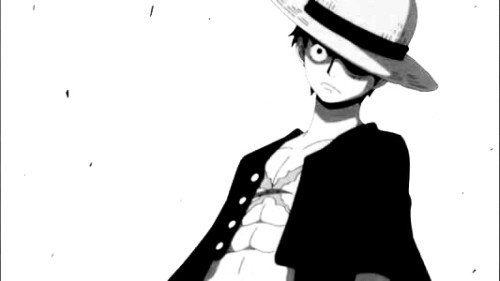 求一张 《海贼王》 路飞单手拿衣服向前走的黑白图片