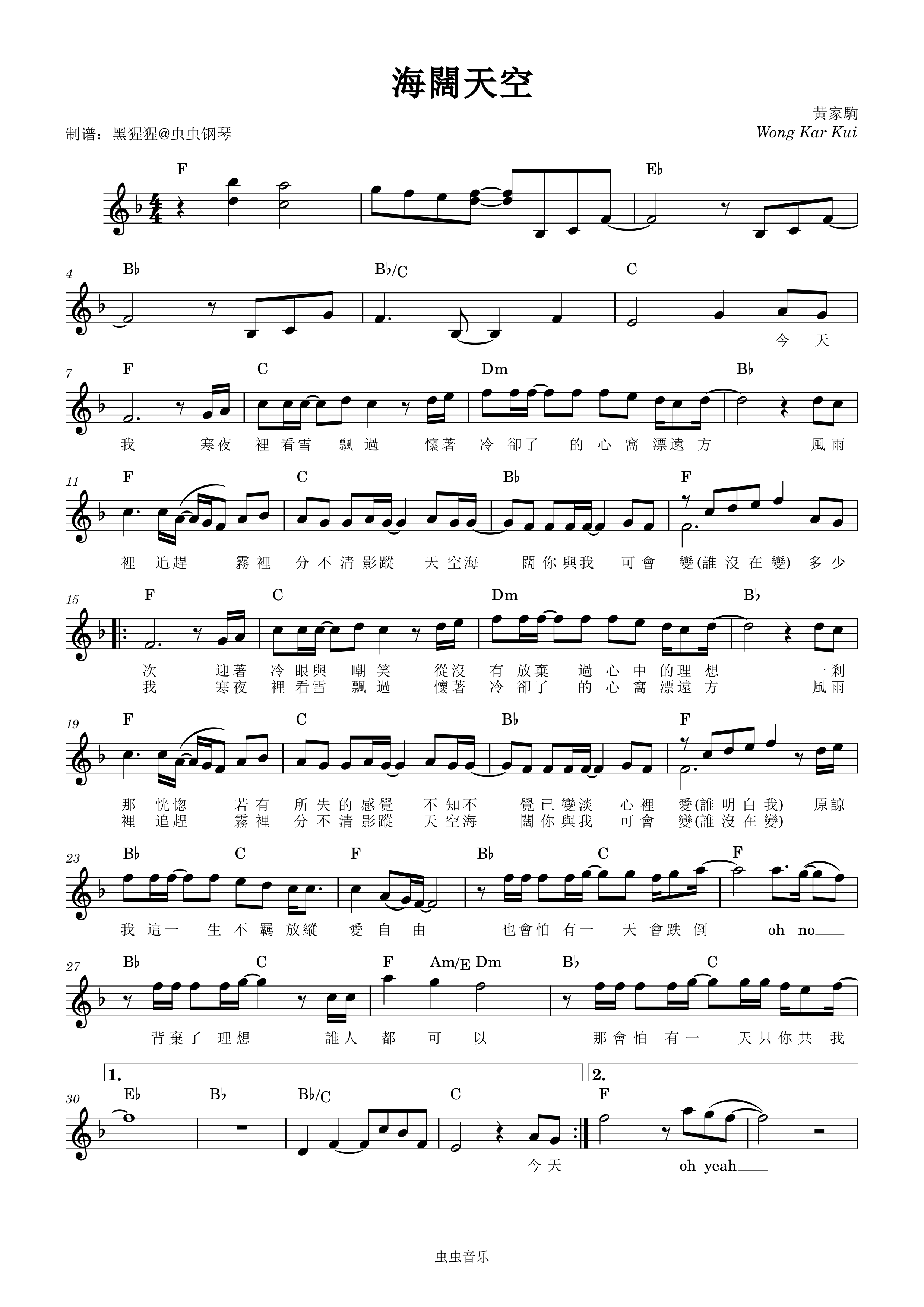 海阔天空钢琴谱-beyond-黑猩猩-虫虫钢琴