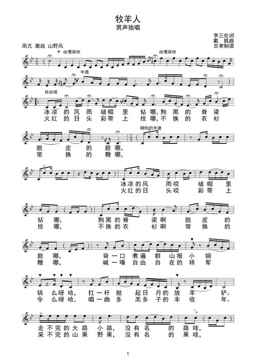 牧羊人 民歌曲谱