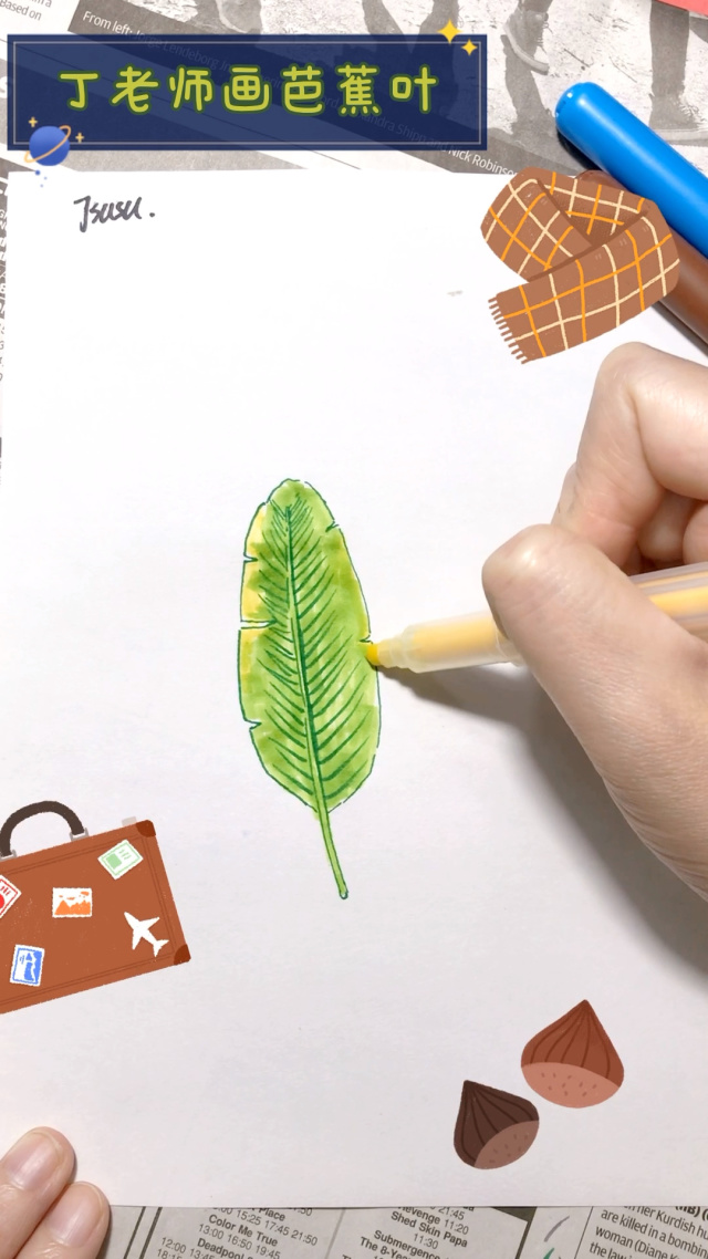 今天老师将要带领你们用线描 水彩晕染的方法画出属于你的芭蕉叶
