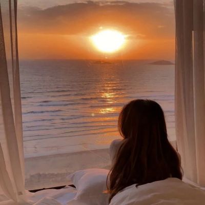 日落头像女高清唯美背景为夕阳的女生头像图片