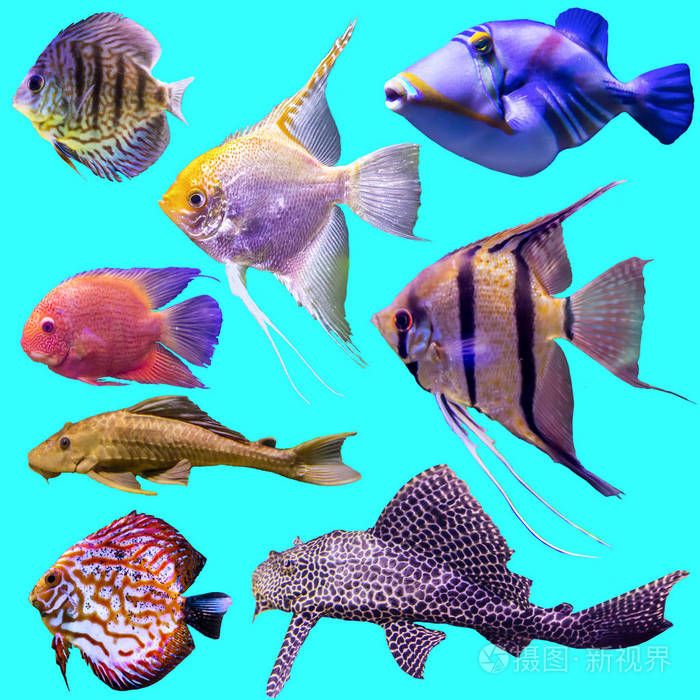 热带鱼类集合,在白色背景上的热带鱼集合.