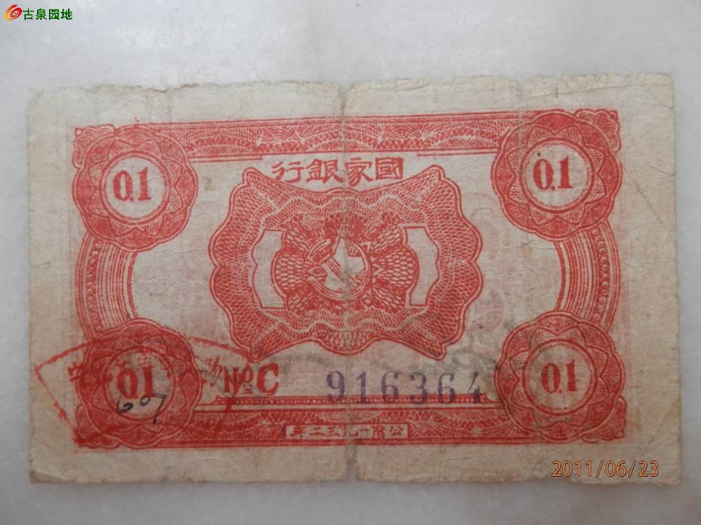 0656 中华苏维埃共和国国家银行壹角 壹圆各一张