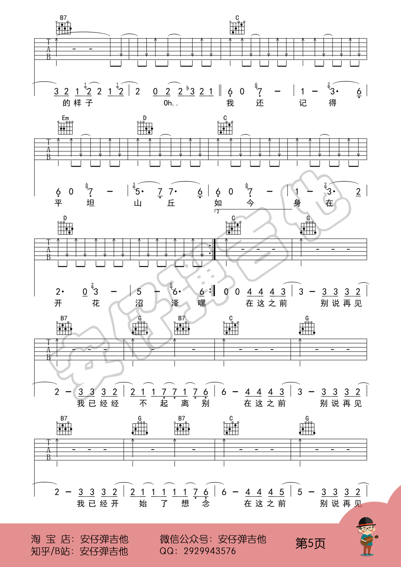 凄美地(原版g调弹唱高清图片) 吉他谱