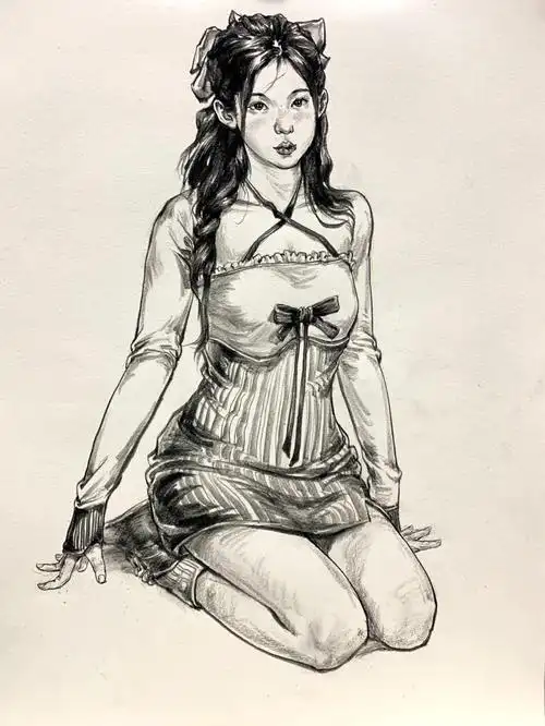 人物速写坐姿照片写生素材5
