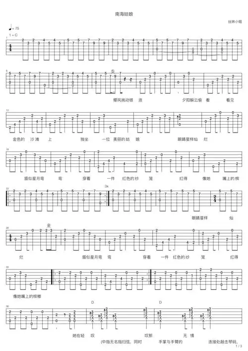 《南海姑娘》,丝袜小姐(六线谱 吉他谱吉他谱 第1页