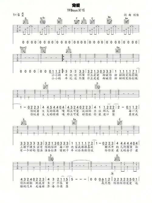 tfboys宠爱吉他简谱