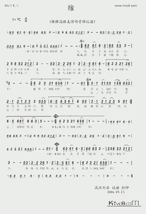 还原《缘》的歌词及简谱的真面目