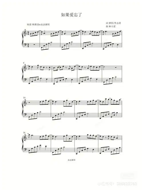 《如果爱忘了》简谱 五线谱 "如果爱忘了,泪不想落下"#简谱 - 抖音