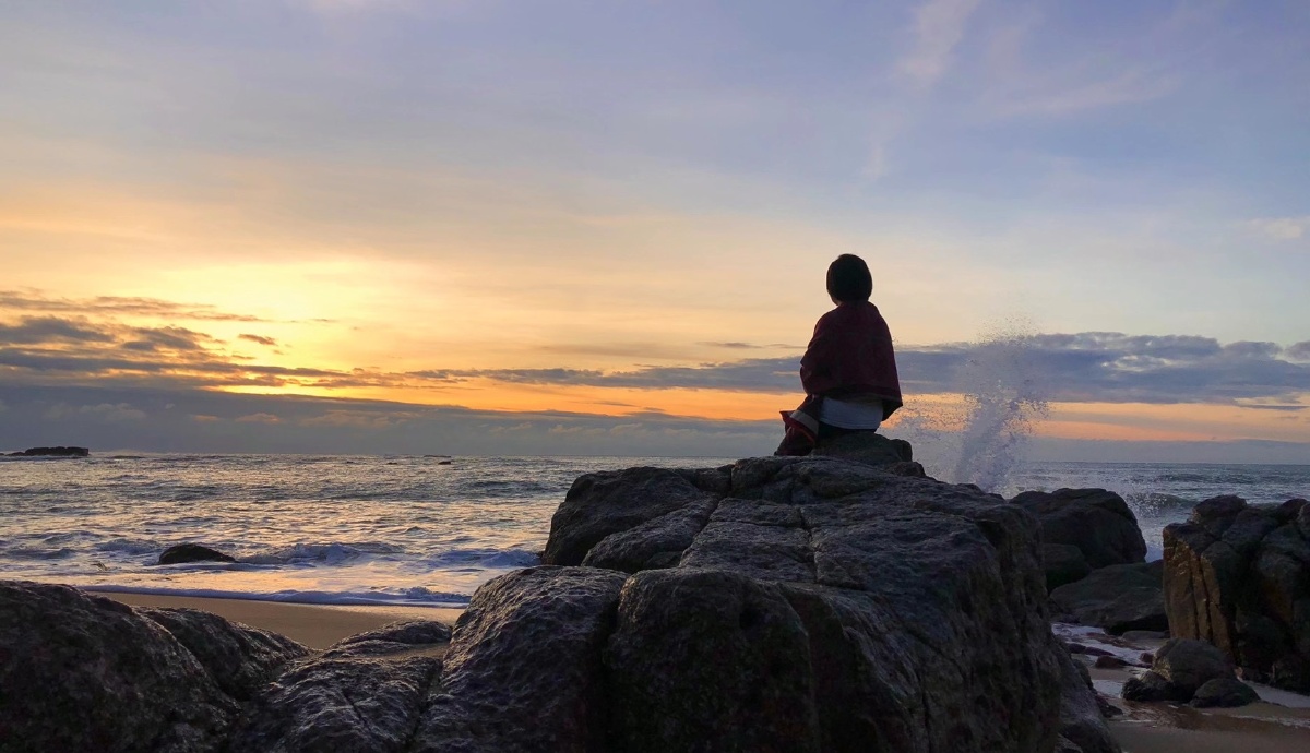一个人的海边背影