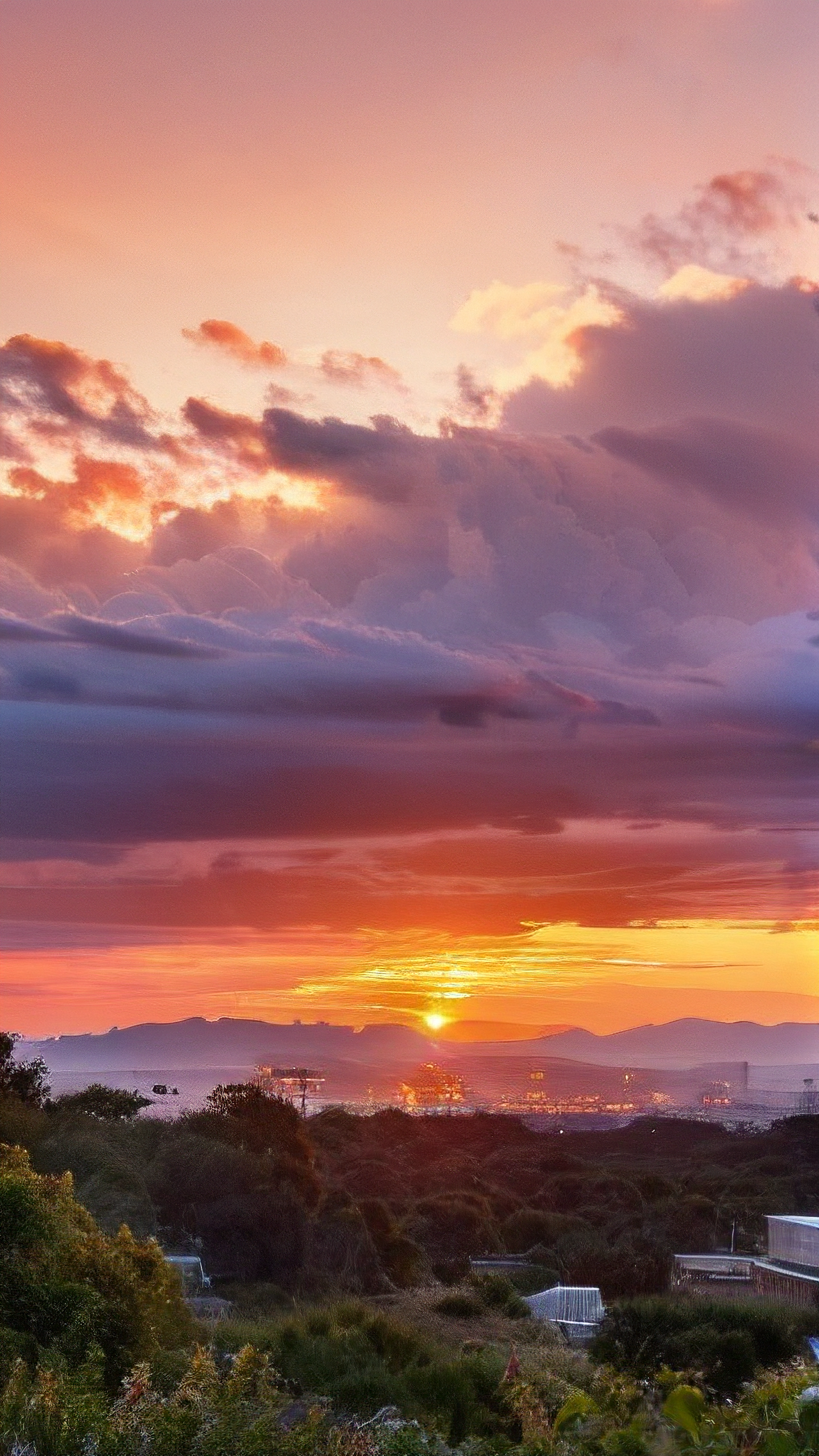 ai扩图 夕阳黄昏,如同一幅美丽的画卷,将天空渲染成一片金黄色