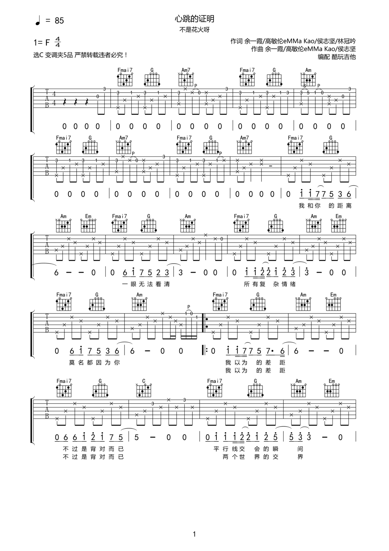 不是花火呀心跳的证明吉他谱
