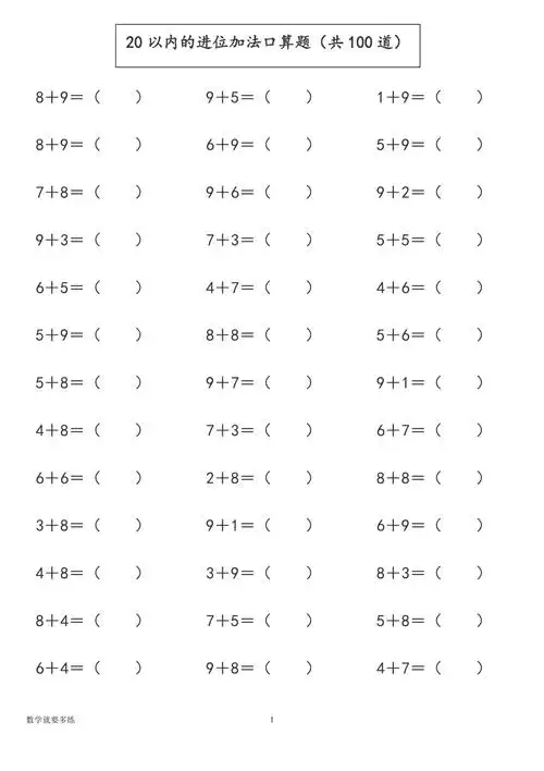易错专攻一年级上册数学《20以内的进位加法》竖式计算 - 抖音