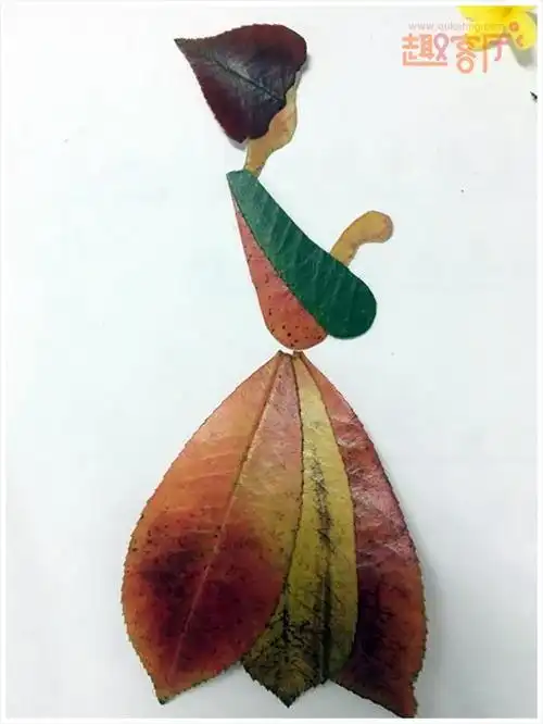 树叶粘贴画做穿裙子的女孩图片大全