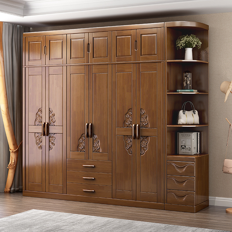 兰秀家居 中式实木衣柜对开门推拉六门大容量衣柜卧室经济橡胶木大