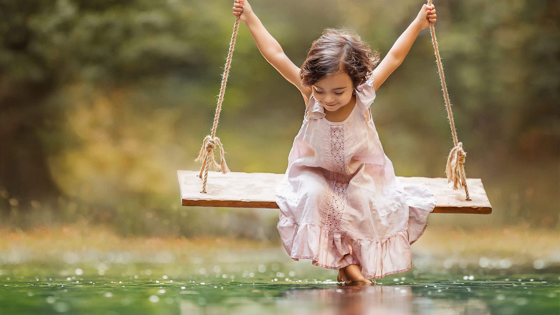 可爱萌娃宝贝荡秋千高清电脑壁纸