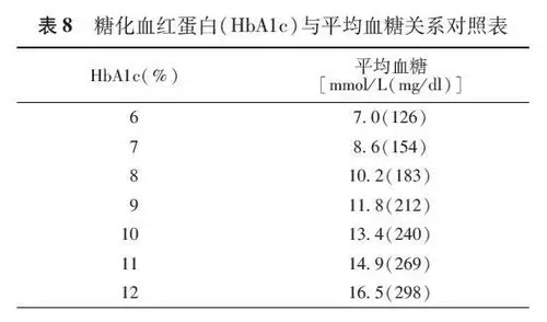 表8.糖化血红蛋白与平均血糖关系对照.jpg