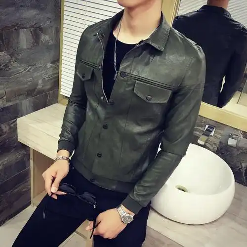 新款社会人精神小伙外套男修身韩版格子翻领青年夹克快手网红上衣
