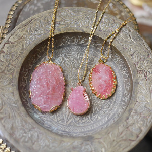 天然芙蓉石吊坠女项链s925纯银镀金镶嵌素面粉水晶粉色宝石招桃花