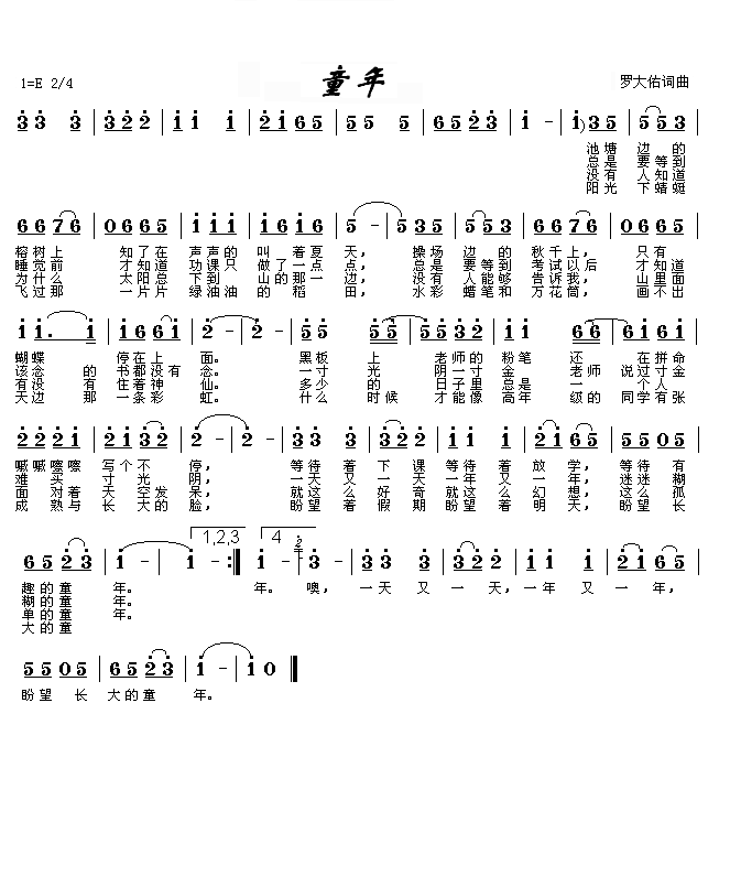 童年简谱儿童经典歌曲罗大佑