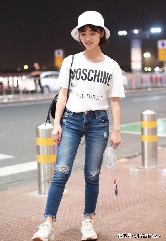 沈月春晚过后首次亮相机场,褪去高跟鞋的她,1米6身高真实合理