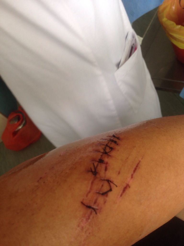 胳膊受伤缝针
