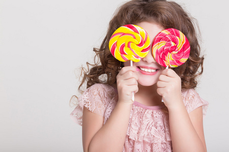快乐的小女孩,与孤立的棒棒糖