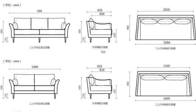 沙发示意图 单位:mm