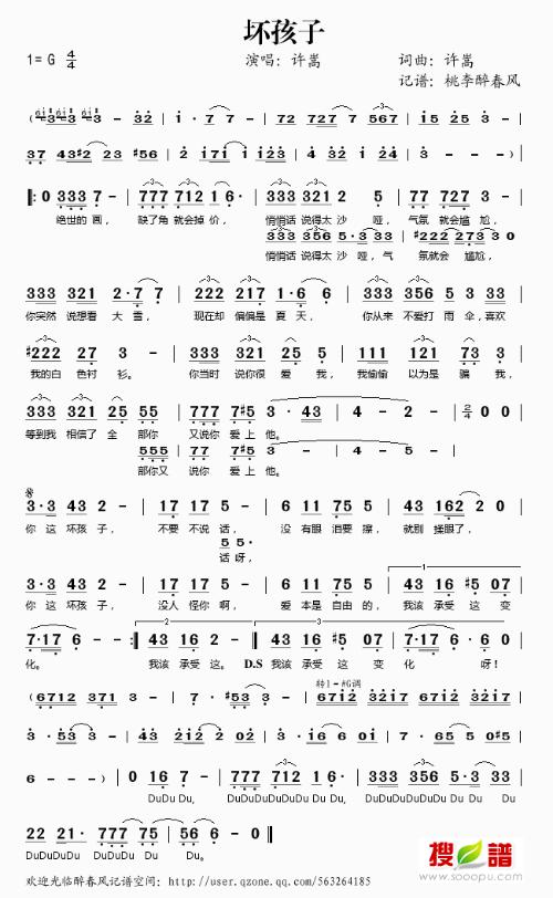 坏孩子简谱-舒家吉他谱网