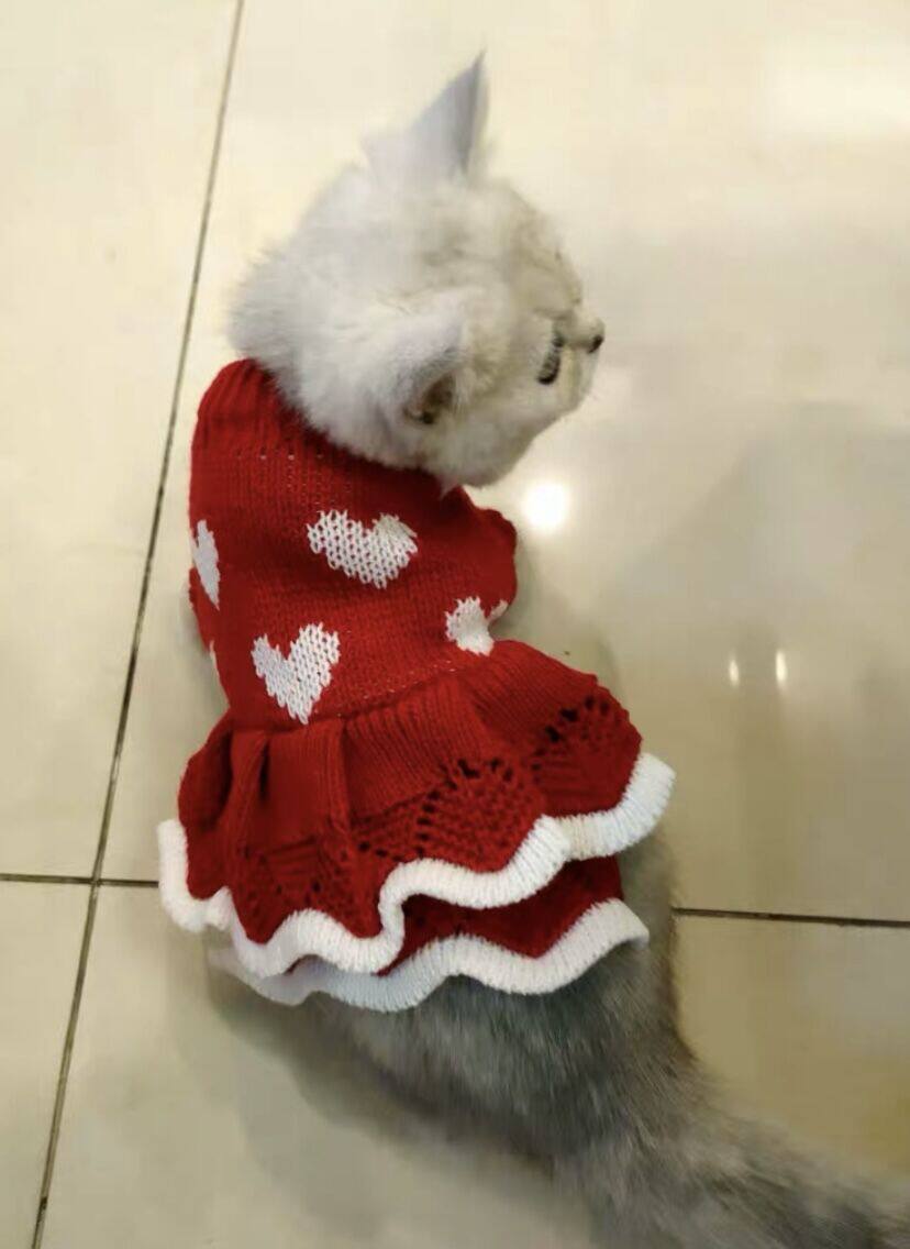 圣诞节猫咪小毛衣服可爱用品套头冬季圆领加厚保暖防掉毛红色新年